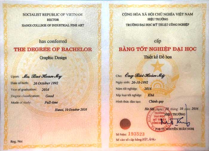 Bằng tốt nghiệp Đại học - Ngành TK Đồ Họa - 2016